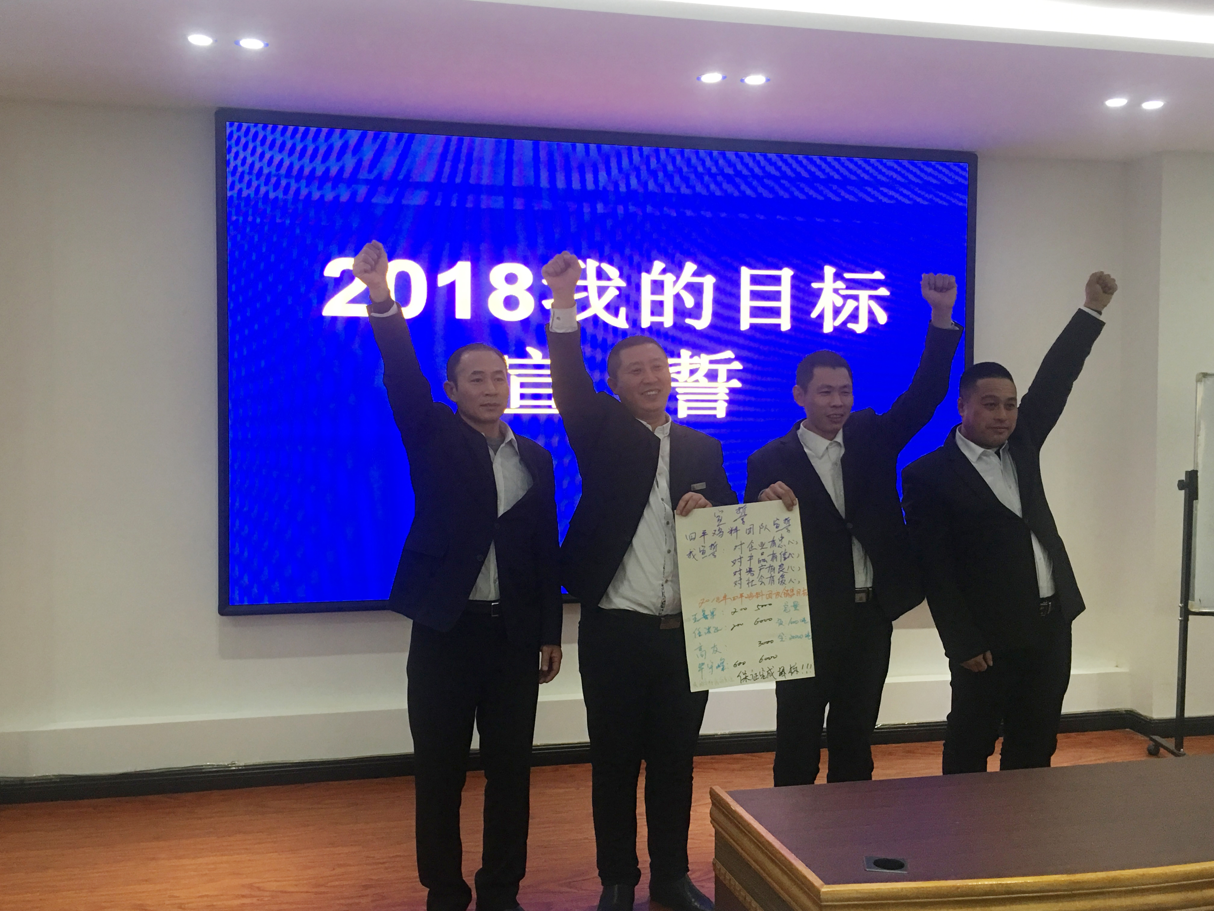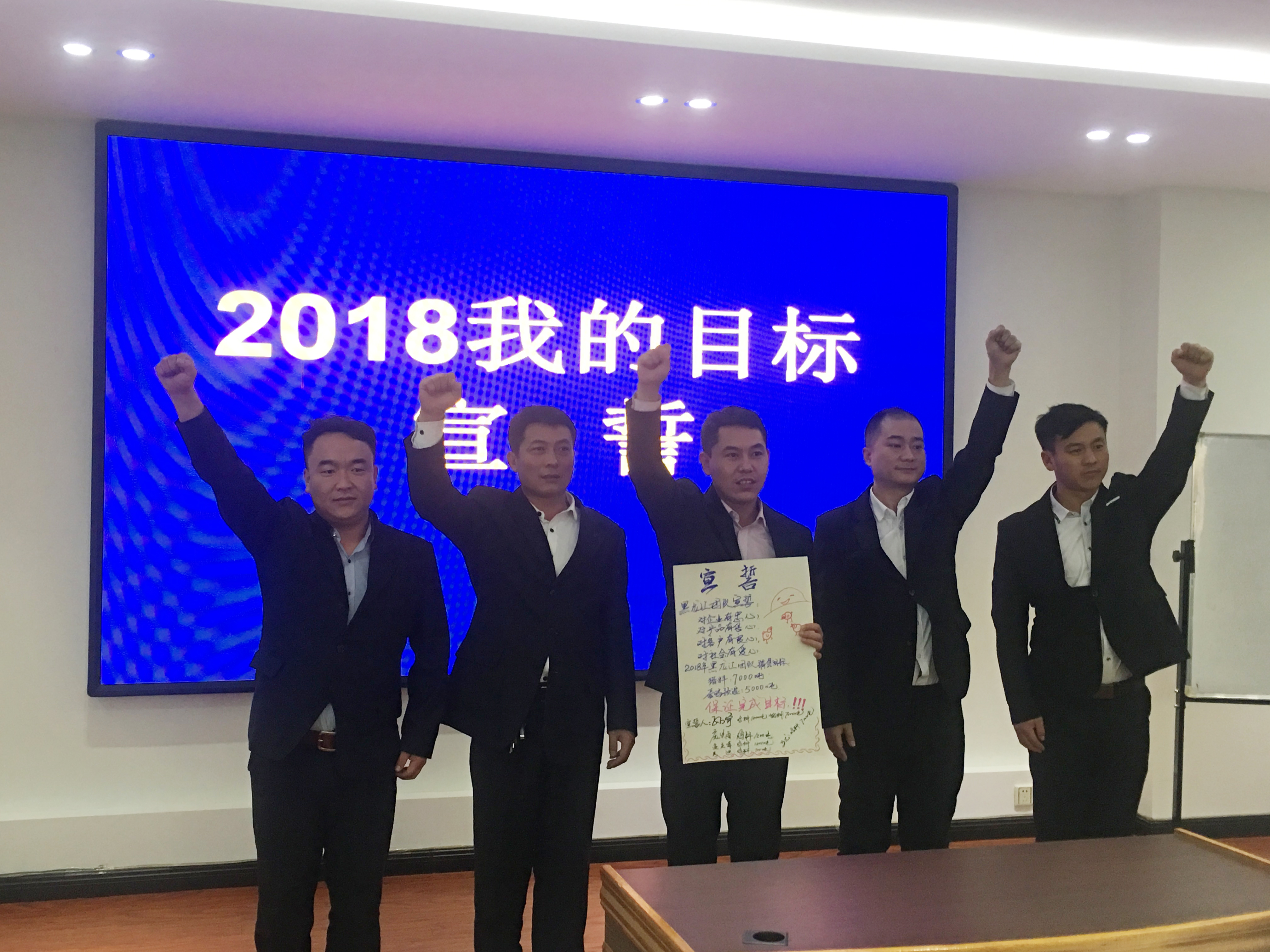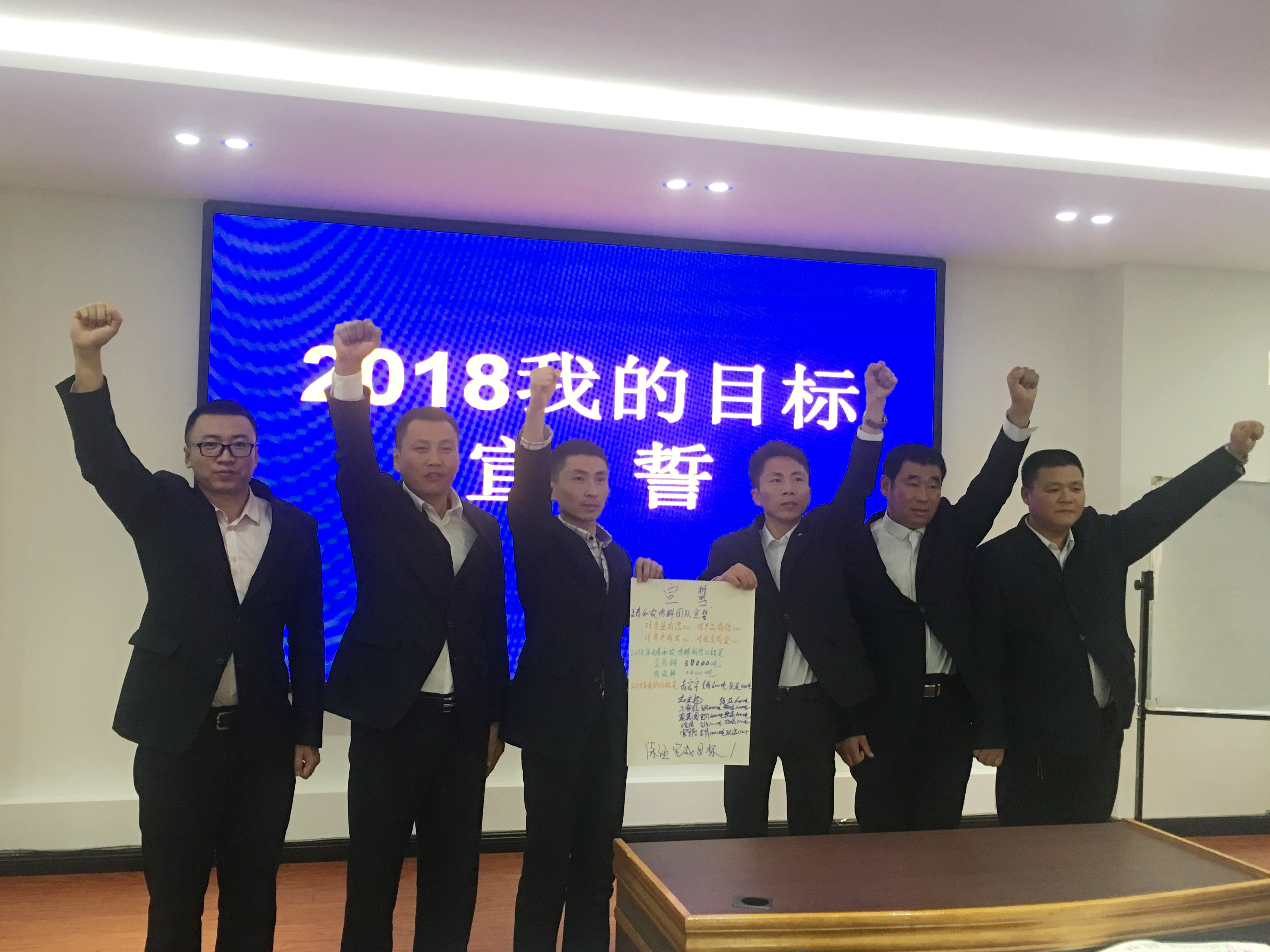 2018年1月3日,和農(nóng)牧業(yè)集團2018年營銷目標(biāo)宣誓在公司會議室召開?!皩ζ髽I(yè)有忠心,對產(chǎn)品有信心,對用戶有良心,對社會有愛心。我宣誓在2018年做到……”等鏗鏘有力的宣誓聲響徹整個會議現(xiàn)場。