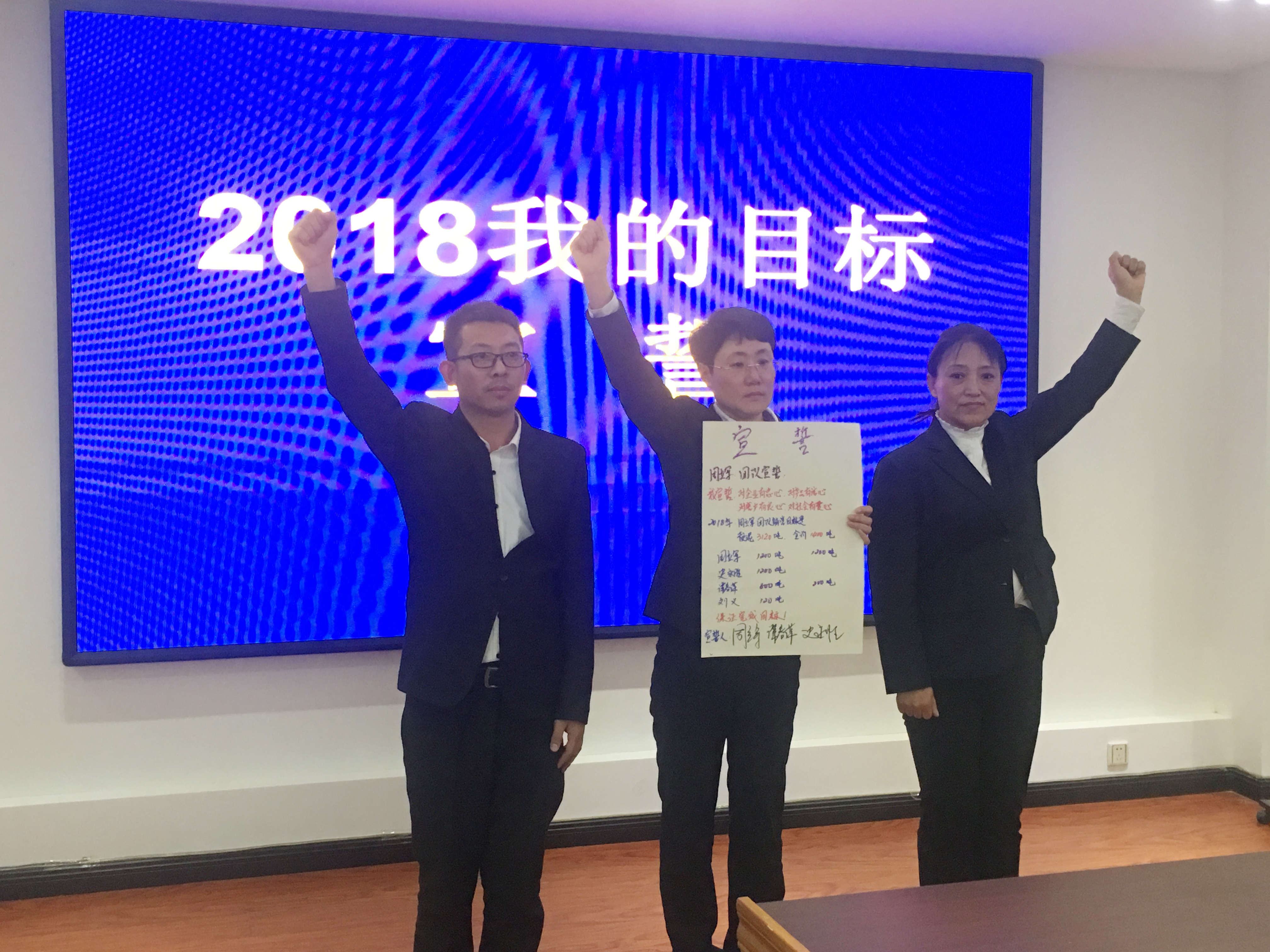 本次營銷目標(biāo)宣誓加強銷售經(jīng)理人的責(zé)任感,提高公司的管理效率。銷售經(jīng)理人對自己所帶領(lǐng)團隊在2018年的銷售目標(biāo)、銷售任務(wù)等內(nèi)容進行現(xiàn)場宣誓承諾。通過本次宣誓,讓銷售人員有了更為具體、切實的奮斗目標(biāo)。
