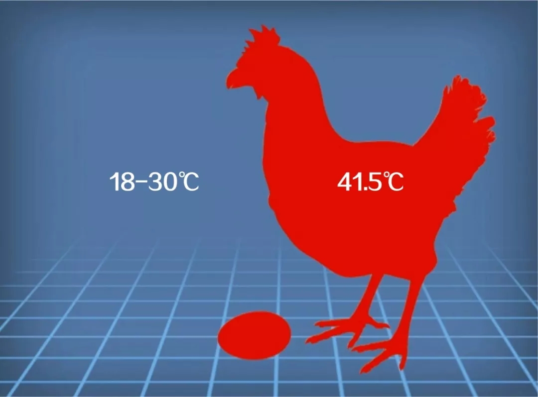 剛排出體外的雞蛋還差最后一個(gè)關(guān)鍵部位,氣室。蛋雞泄殖腔溫度41.5℃左右,環(huán)境溫度18-30℃之間,雞蛋在外部環(huán)境中遇冷收縮,形成氣室。
