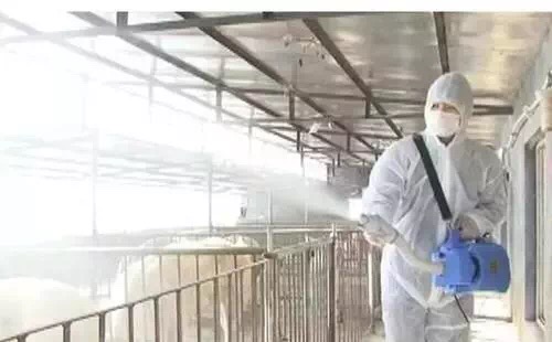 (4)干燥后用過氧乙酸、戊二醛溶液或2%-3%的火堿水徹底沖洗。經(jīng)過 10-12小時后,再用清水徹底沖洗欄圈地面(消毒劑根據(jù)推薦劑量使用)